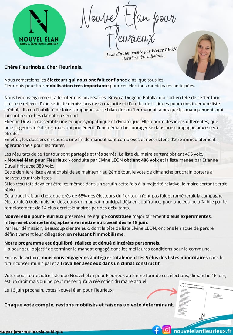 Vous pouvez nous joindre sur Facebook ou sur le site Nouvelelanpourfleurieux.fr"