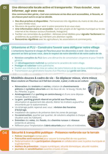 Nous défendons une gouvernance claire et responsable, fondée sur une information accessible et une communication ouverte avec l’ensemble des citoyens.