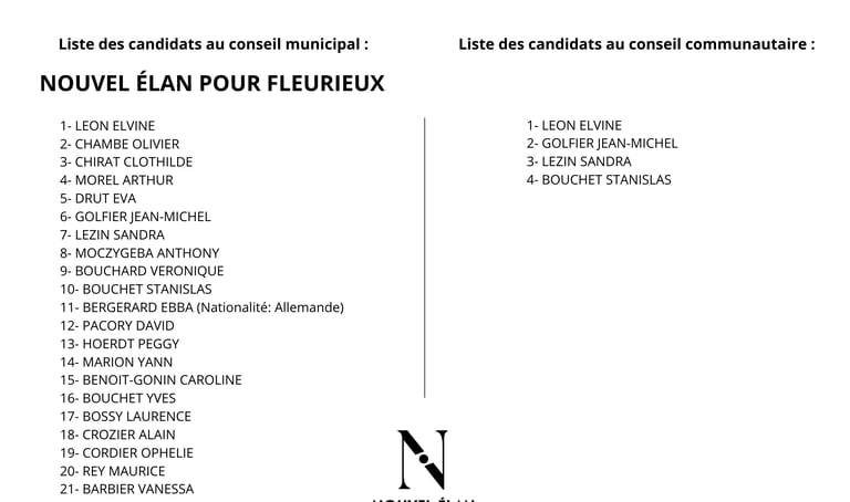 Votez Nouvel élan pour Fleurieux, l'unique choix pour un vrai changement.