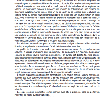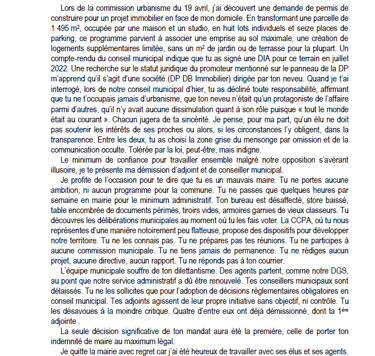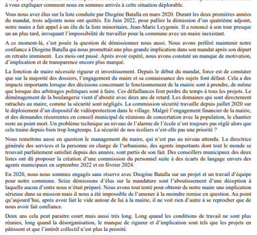 Lettre de démission d'Elvine LEON 1ère adjointe : >>>Télécharger <<<
