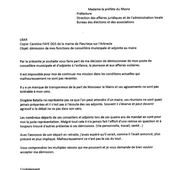 Lettre de démission de Caroline BENOIT-GONIN : >>>Télécharger <<<